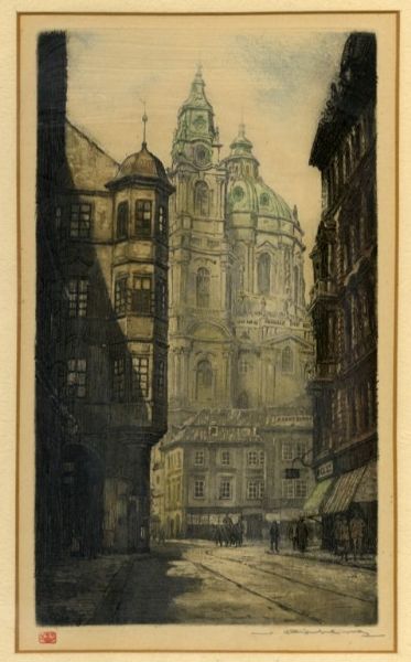 Malostranské zákoutí s chrámem sv. Mikuláše"