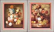 A pair of floral still lifes with peaches (2)