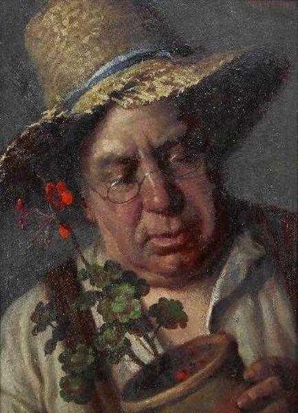 Gardener with Potted Geranium