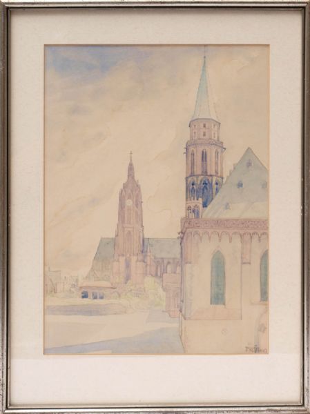 Ansicht des Frankfurter Domes inmitten von Trümmern