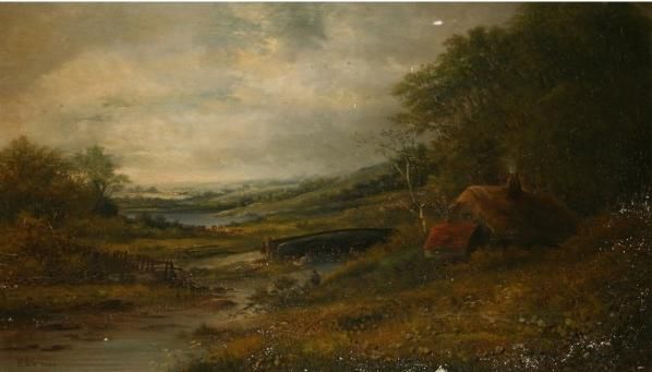 Extensive English Landscapes with Figures Fishing and on a Bridge