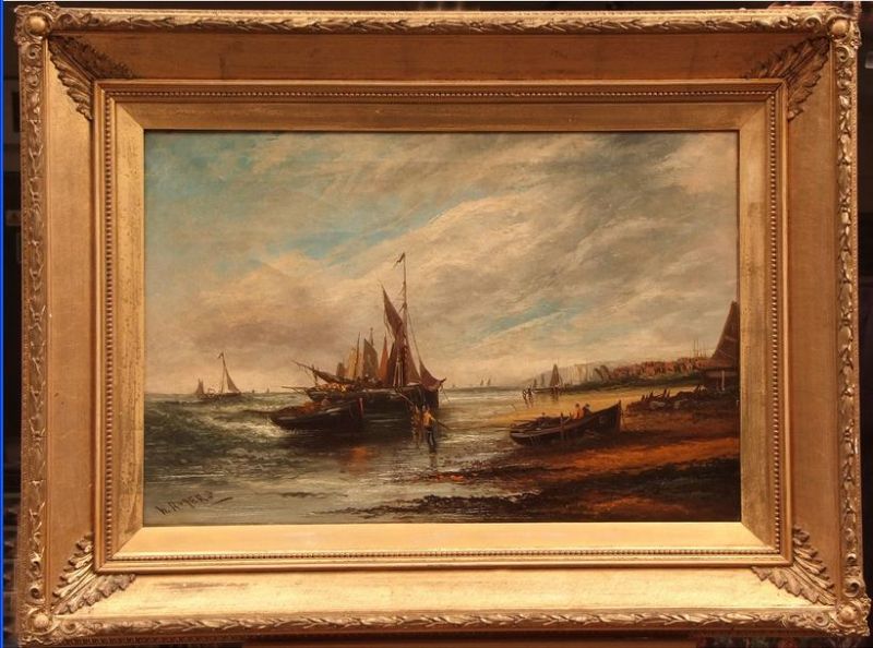 Coastal Scene with Fishing Boats and Fisherfolk