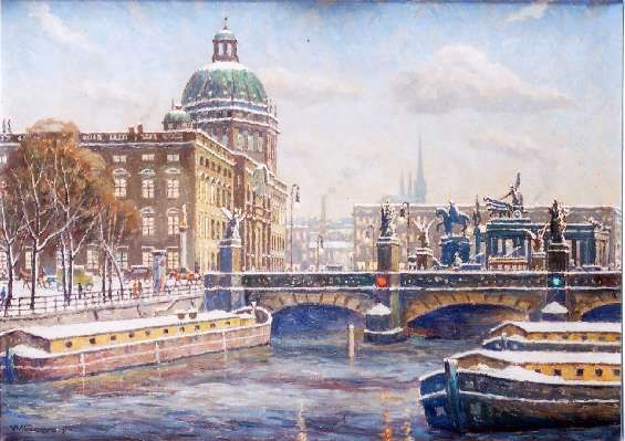 Berlin Ansicht im Winter mit Schloß und Schloßbrücke