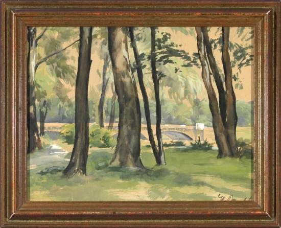 Waldlandschaft mit Bogenbrücke