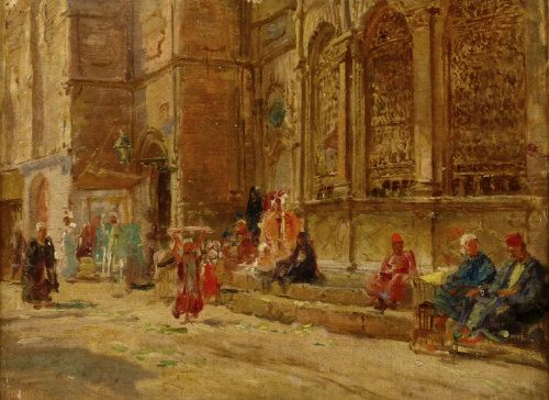 A NORTH AFRICAN STREET SCENE WITH ARABS CONVERSING