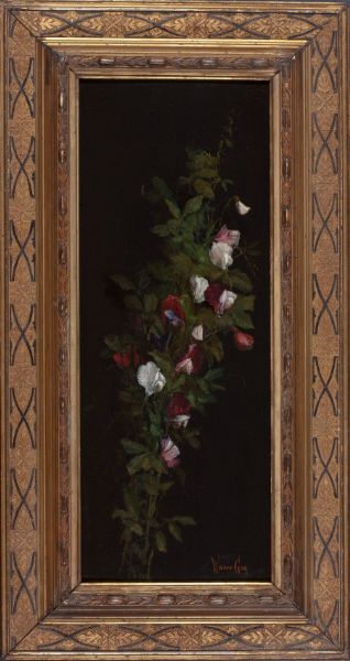 Oil on black lacquered wooden panel