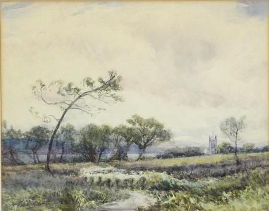 Country scene with steeple