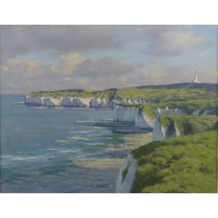 | Flamborough Head viewed from the North depicting white cliffs and the lighthouse | |