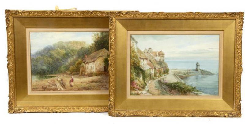 | 'Old Cottages at Lynmouth', and a cottage by a lake with figures before, a pair | |