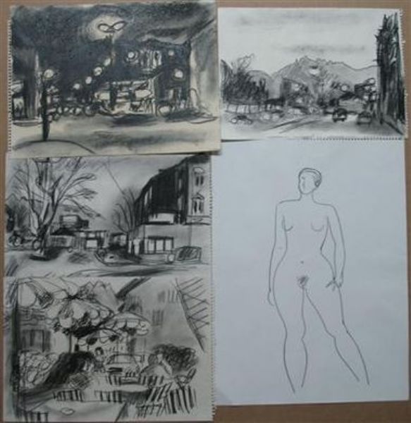 Frauenakt u. "Kaffee- u. Straßenszenen"