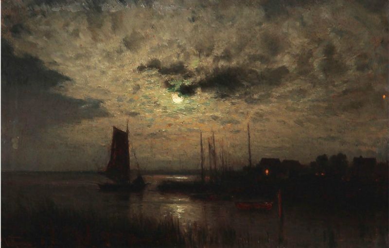 A fishing village in moon light