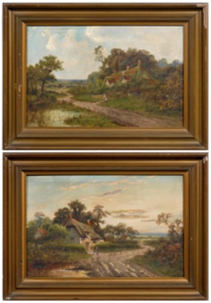 one with figure with geese by a cottage