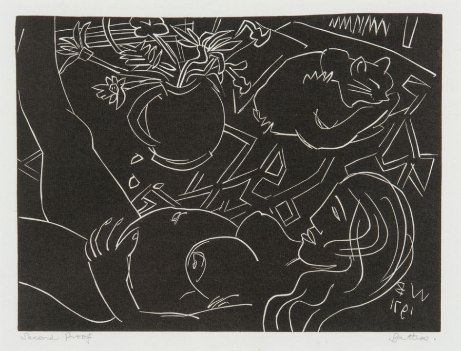 | Female Nude with Cat and Vase of Flowers | |