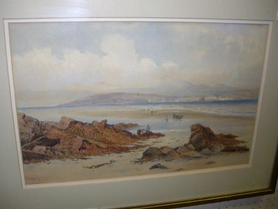 Buncrana from Vinnegar Bay, beech scene with figures in the foreground