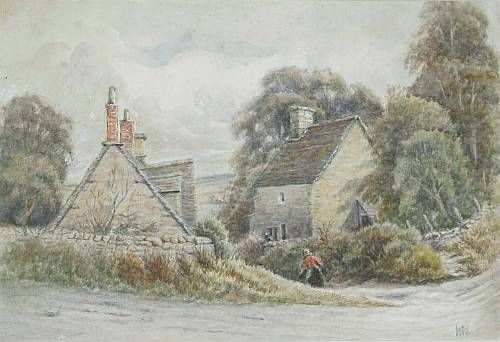 Cottage scene with figure outside