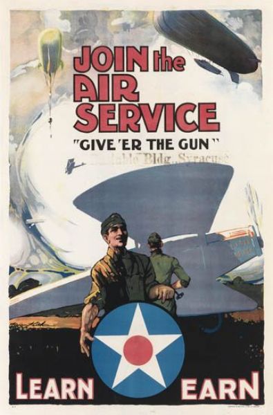 JOIN THE AIR SERVICE / "GIVE 'ER THE GUN."