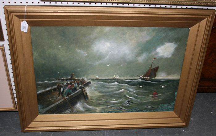 igures on a Harbour Wall, a Coastal View beyond