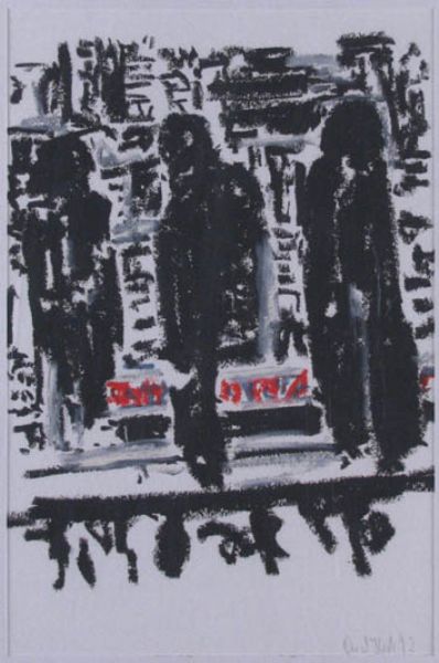 Three black figures.