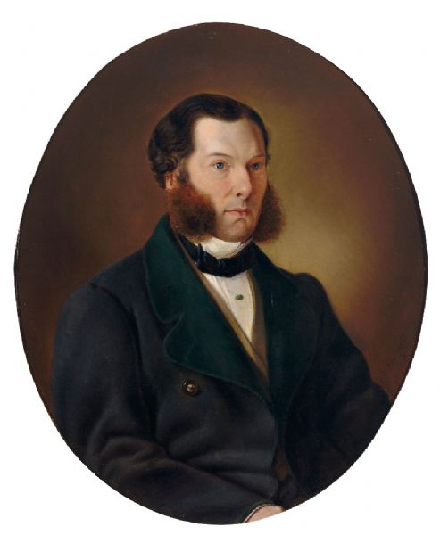 Portrait eines soignierten Herren mit Backenbart, in dunkler Jacke