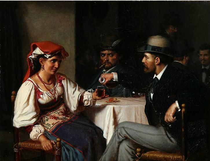 | From a Roman osteria, a young man is flirting with a Roman woman | |