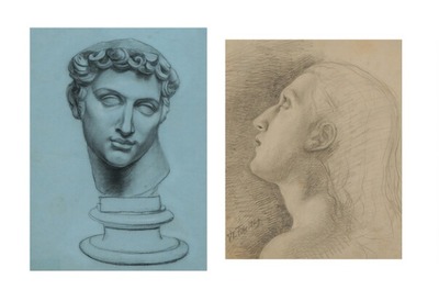 Studies of a woman in profile and classical bust.