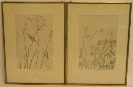 Wiesenblumen mit Schmetterling und "Zweige mit Vögeln"