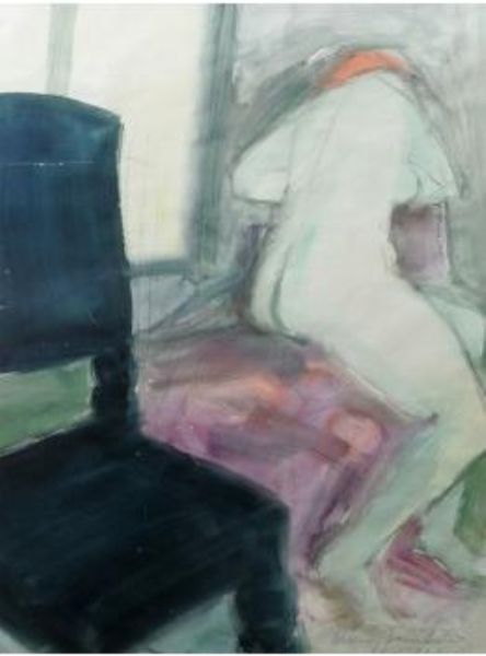 Vilande kvinna vid stol