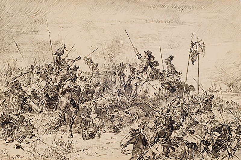 Schlachtenszene mit spanischen Angreifern, Pferden, Lafette u.v.m.