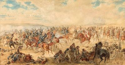 | Schlacht bei Neerwinden, 18. 3. 1793 (1. Koalitionskrieg), Erzherzog Karl mit Husaren und Kürassieren gegen die Truppen des fran | |