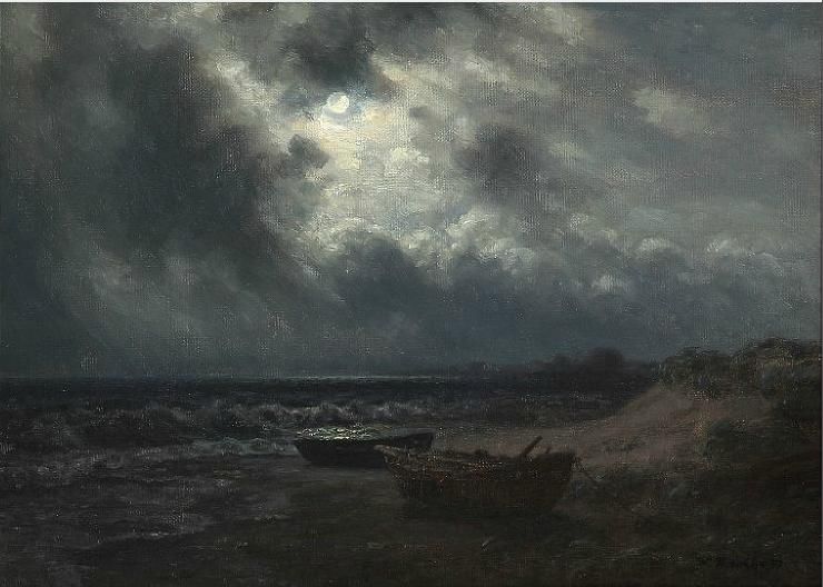 Beach scene in moonlight.