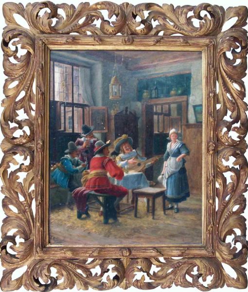 Fröhliche Herrenrunde in einer holländischen Stube.
