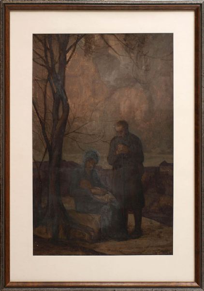 Heilige Familie bei der Rast in modernistischer Bildauffassung.