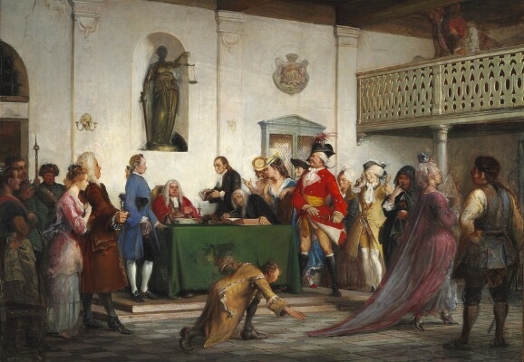 | Scene from Ludvig Holberg's comedy “Det Lykkelige Skibbrud” (The Happy Shipwreck). | |