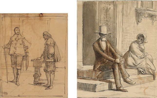 | The Danish King Christian IV and a member of his court & A couple seated in a doorway | |