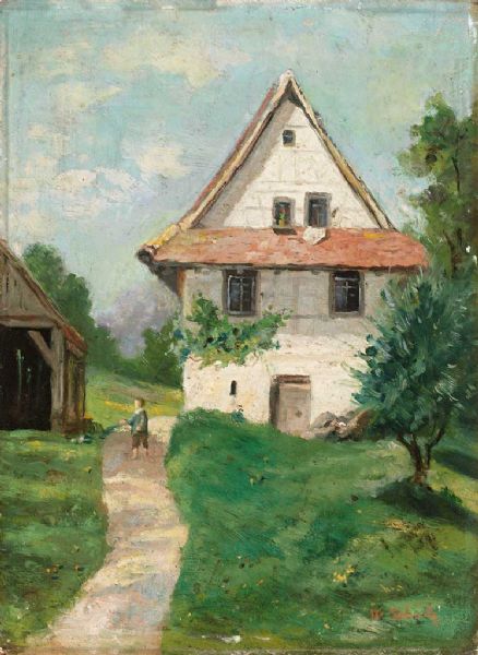 Blick auf ein malerisches Gehöft an einem Sommertag
