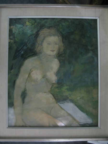 Naken kvinna på bänk ca