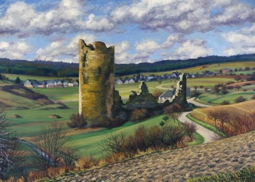 Blick auf die Burgruine Baldenau, im Hintergrund Hinzerath