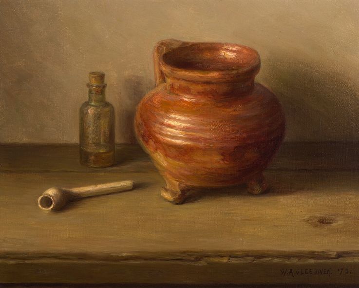 Stilleven met stenen kruik en pijpje