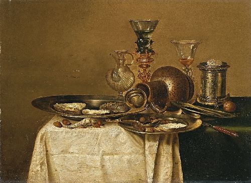 STILLLEBEN MIT GLÄSERN, ZINNTELLERN UND AUSTERN
