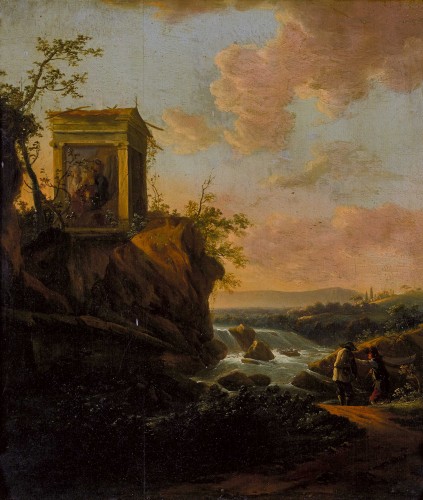 Felsige Landschaft mit Fluss und zwei Fischern.