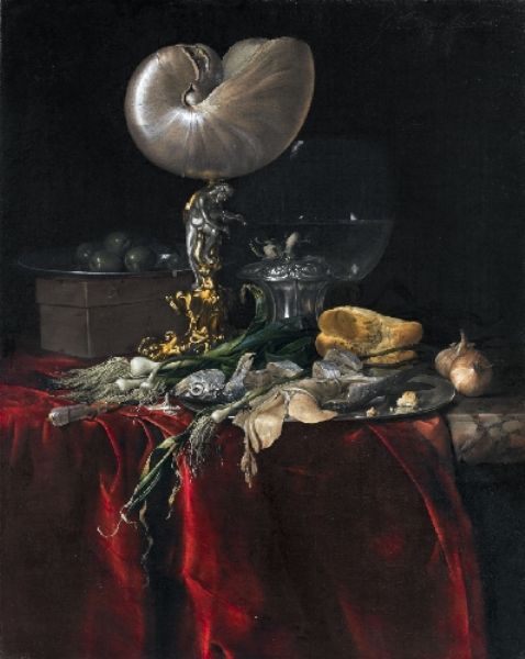 STILL LIFE WITH FISH, BREAD, AND A NAUTILUS CUP
