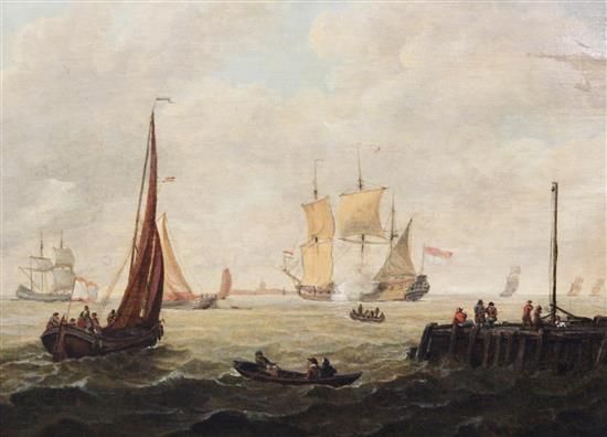 | Shipping off the coast with Dutch frigate firing a salute | |