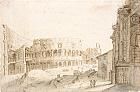 | Pen and brown ink and brown and grey wash, within brown ink framing lines | |