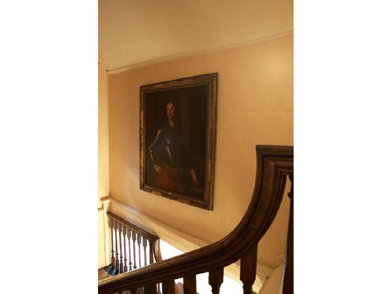 | A portrait of a gentleman wearing half-armour and a long wig, a landscape beyond | |