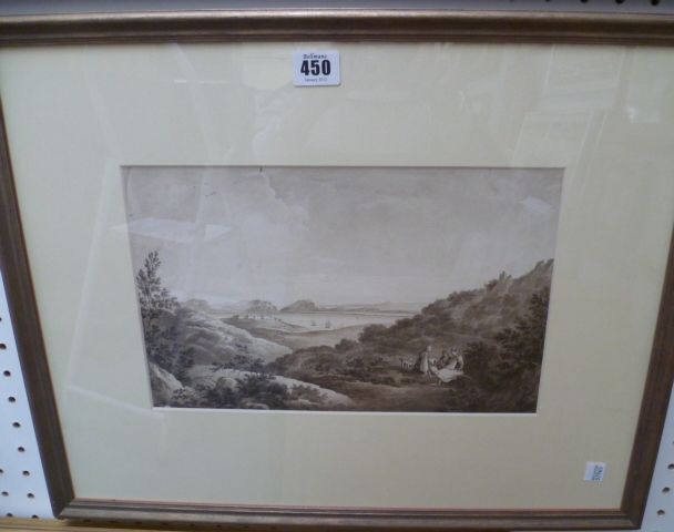 | Travellers resting in the hills, the coast of Navarino beyond | |