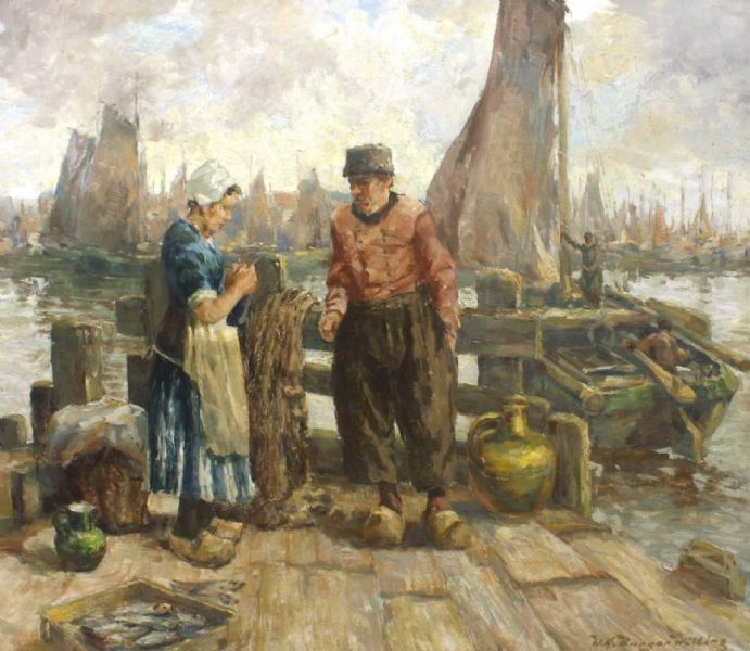 Holländisches Fischerpaar im Hafen