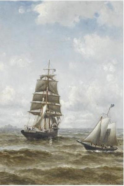 A merchant brig hove to, awaiting pilot boat No. 10