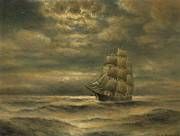 Clipper ship in the moonlight