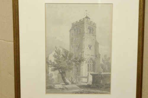 | Study of a Country Church, with figures beside a tree in the foreground | |