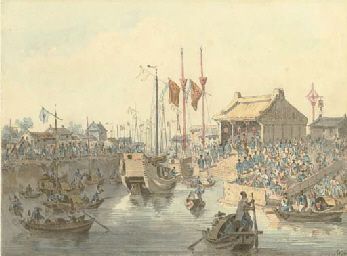 | The temporary pavilion erected on the Banks of the Un-leang for the Landing of Lord Macartney's Embassy at Tien-Sin | |